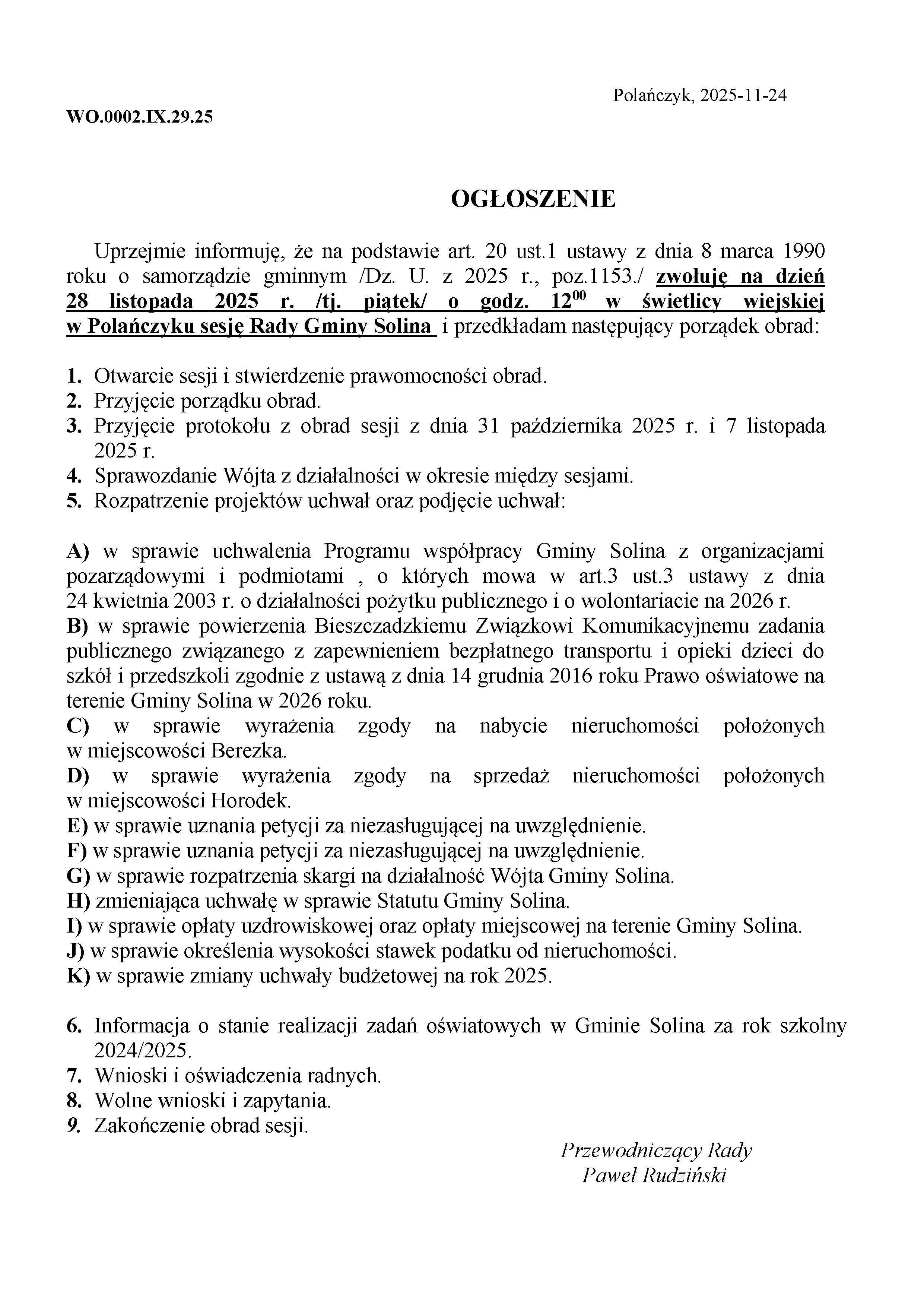 Sesja Rady Gminy Solina