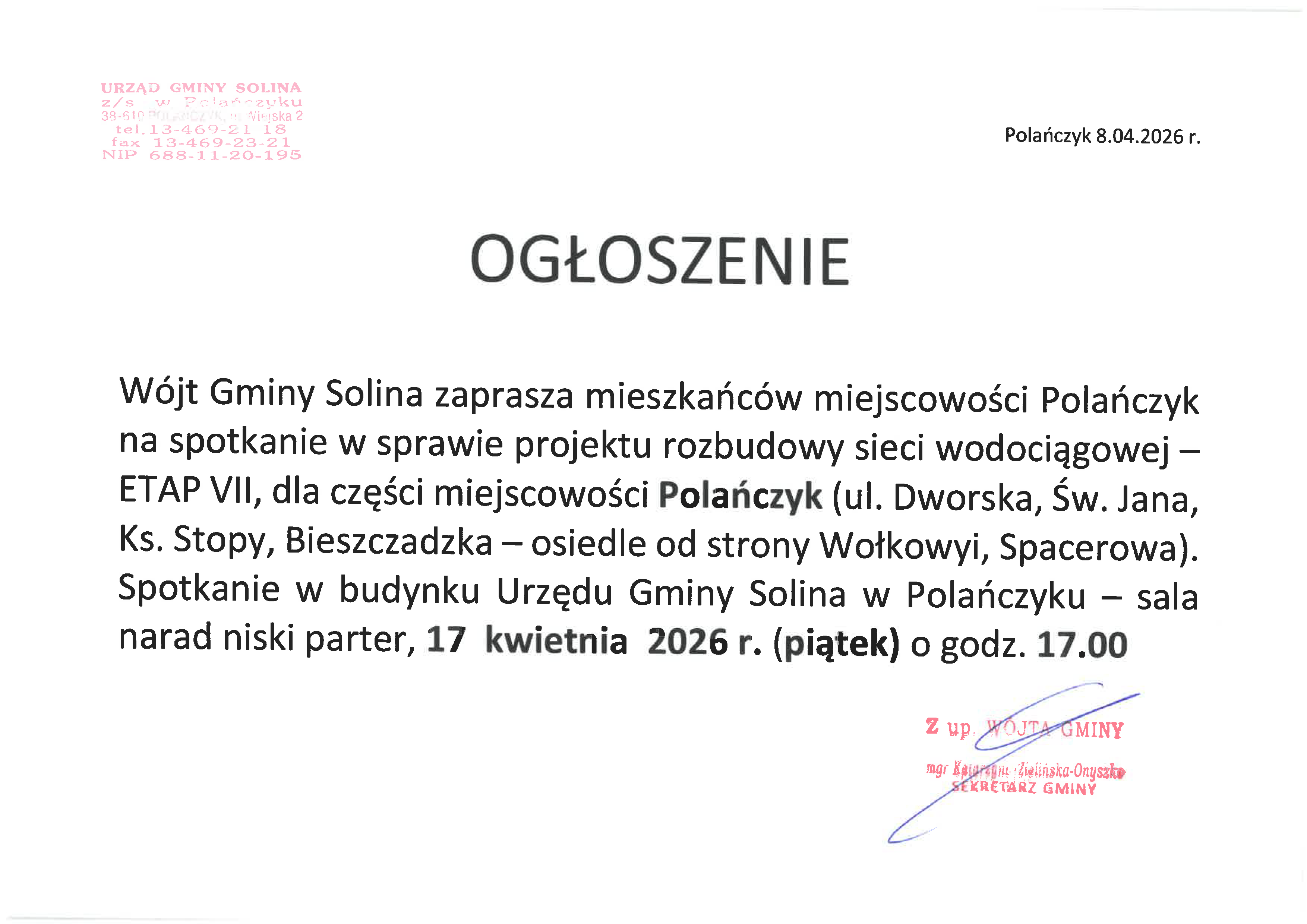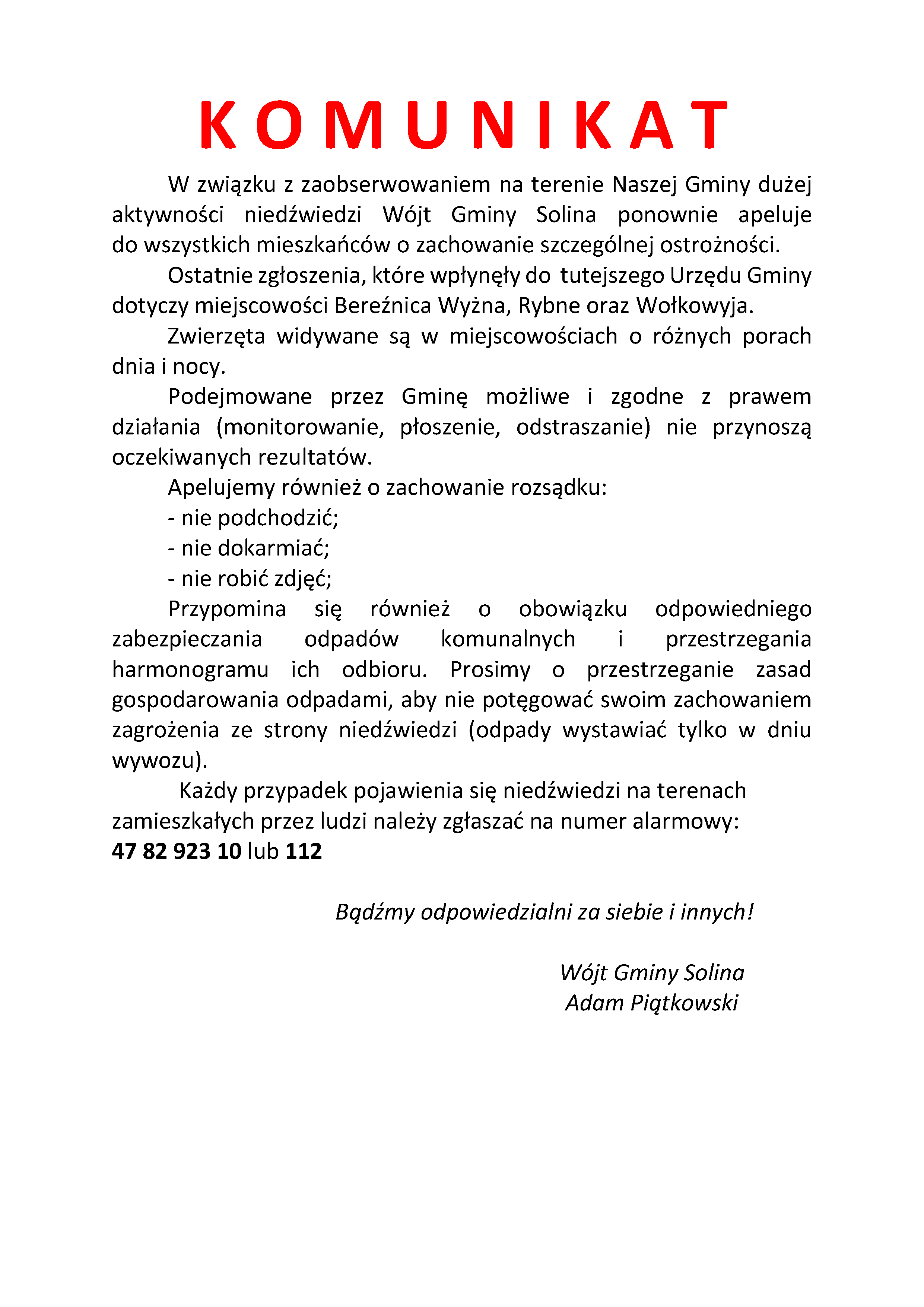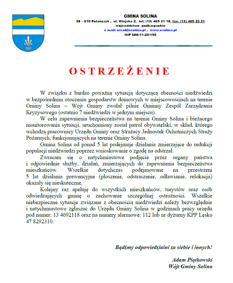 Szanowni Mieszkańcy Gminy Solina,