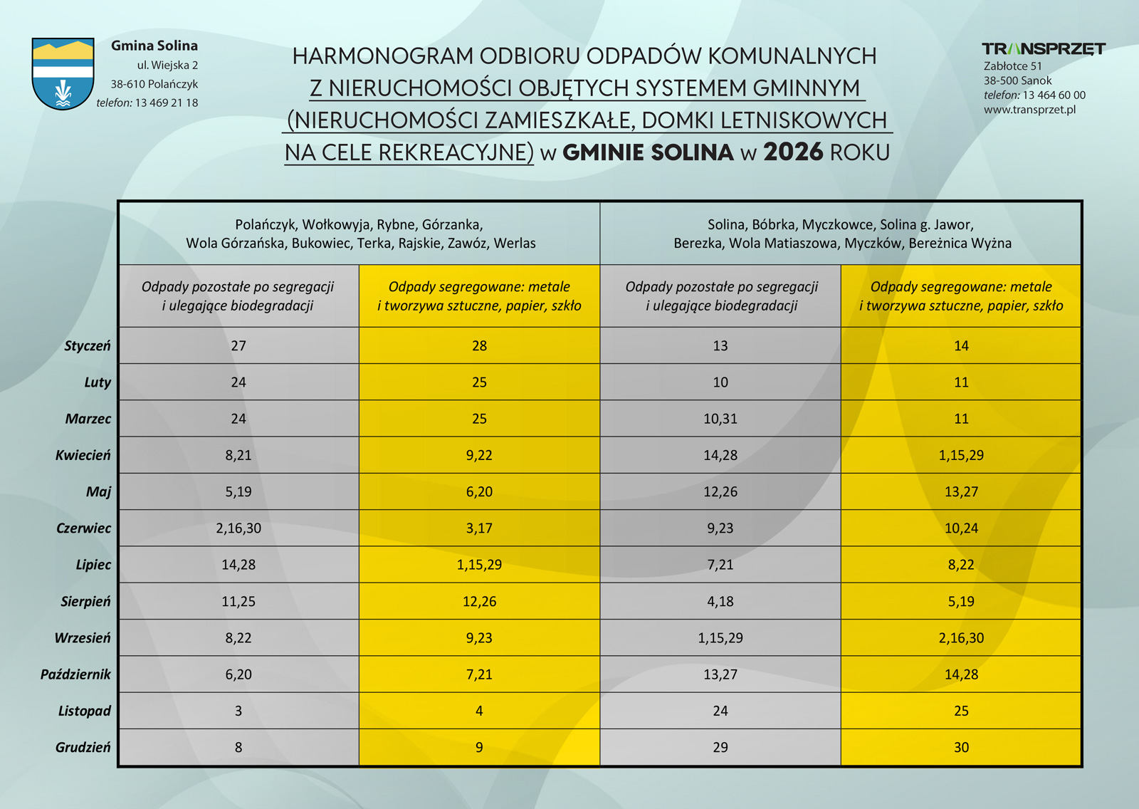 Harmonogram odbioru odpadów na 2025 rok